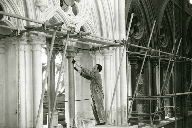 From a scaffolding platform rising more than 100 feet (31 metres) above the floor, the work also offers a rare opportunity to see architectural details decorating the nave up close while repairs are carried out.